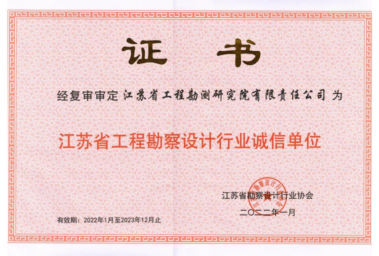 华体网站登陆入口再次喜获“江苏省工程勘察设计行业诚信...