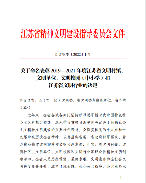 华体网站登陆入口荣获“2019—2021 年度江苏省...