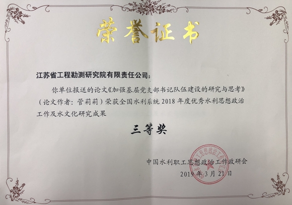 华体网站登陆入口荣获扬州市2018年度优秀勘察设计企...