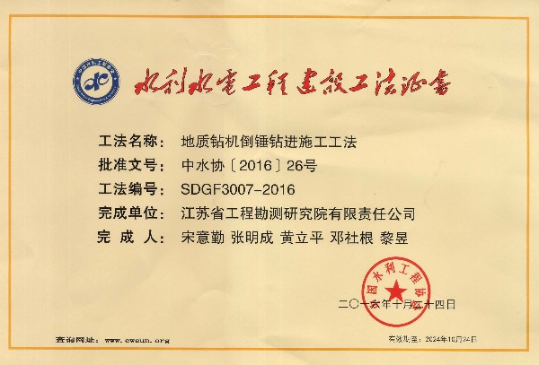 华体网站登陆入口一工法被评为2016年度水利行业部级...