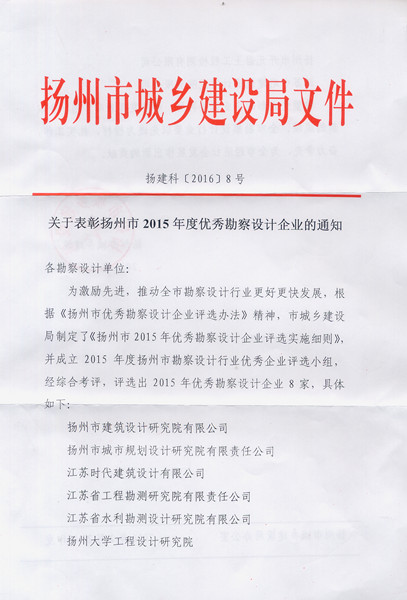 华体网站登陆入口获扬州市2015年度优秀勘察设计企业...